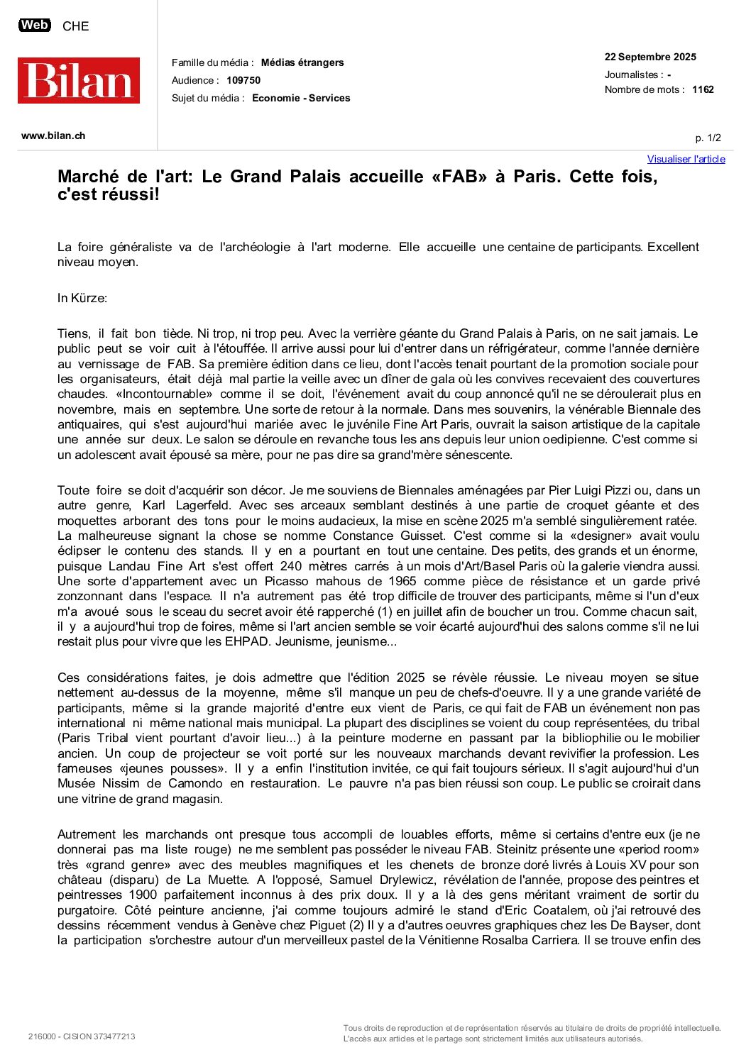 During the first quarter of 2016, Applicat-Prazan will be participating in three important International art fairs comprising TEFAF Maastricht in the Netherlands, Art Basel Hong Kong and the Salon du Dessin in Paris.